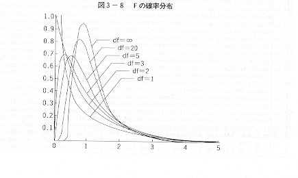 注)自由度に対応した棄却域のF値は、しばらく前までは「Fの表」から求めていましたが、現在は、統計プログラムでFの確率を直接求めることができます。